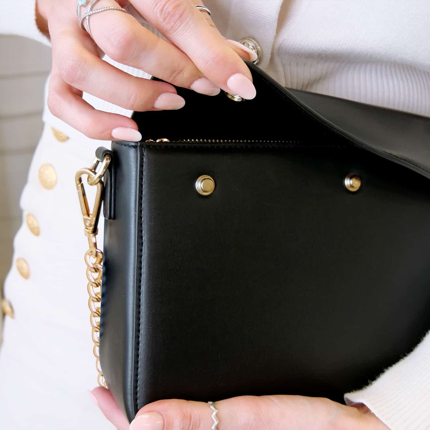 Our interchangeable accessories system allows you to easily change your bag's flap in just a few seconds thanks to three snap buttons.