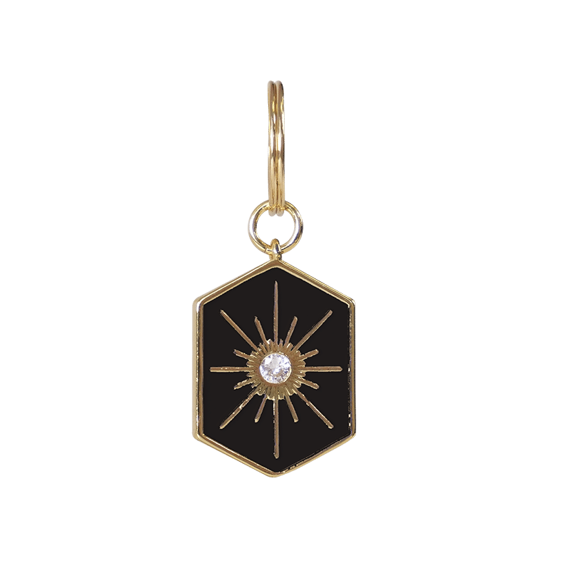 "Sunshine" Black charm in gold-plated copper with transparent stone. To be paired with the clasp of your choice to create the ideal bag.